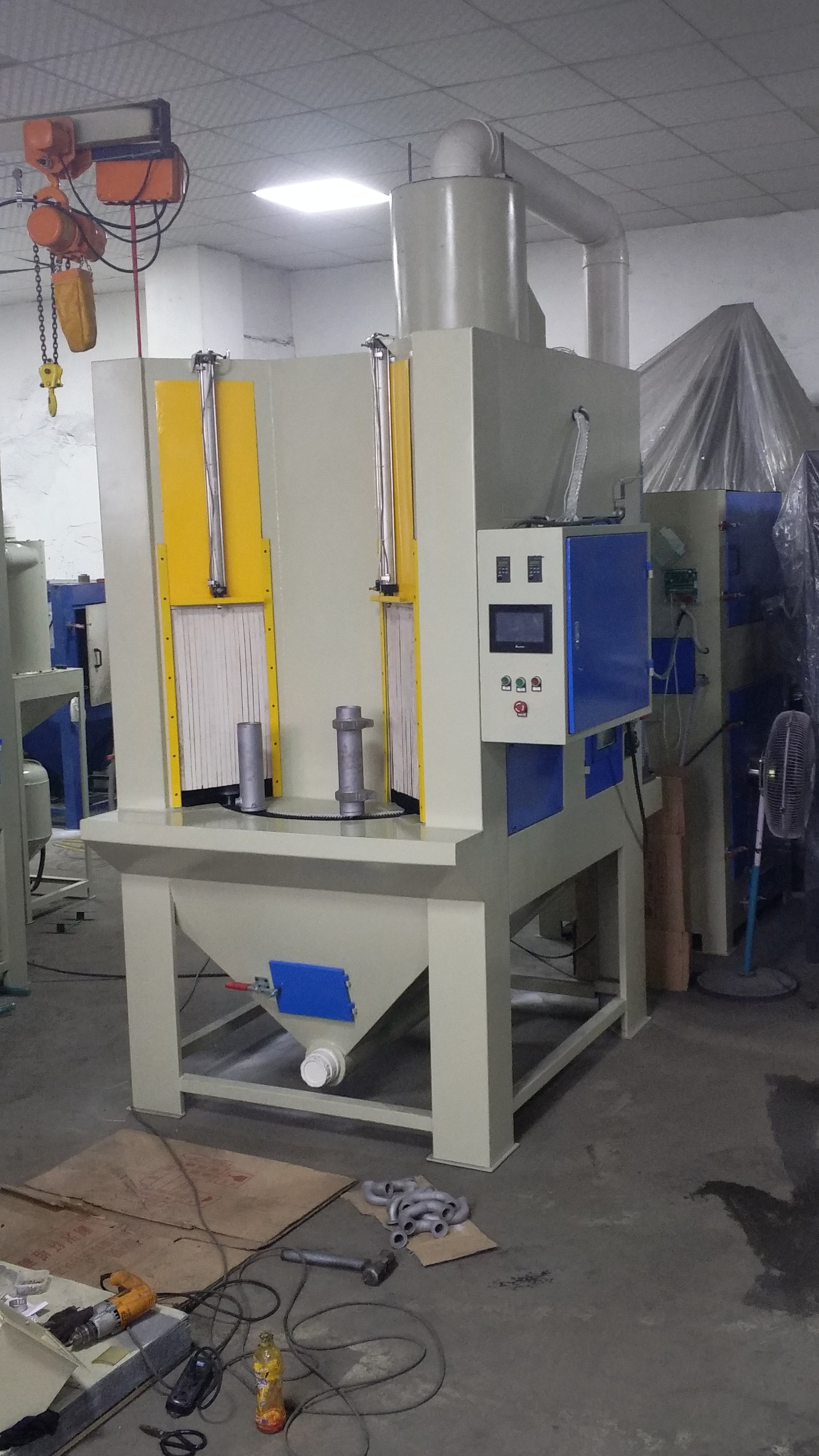 6、本機配置有上旋風分離器,可實現(xiàn)磨料與粉塵的有效分離,保證產品加工的高質高效,同時最大限度節(jié)省磨料的消耗,提高倉內可見度和減少環(huán)境污染。